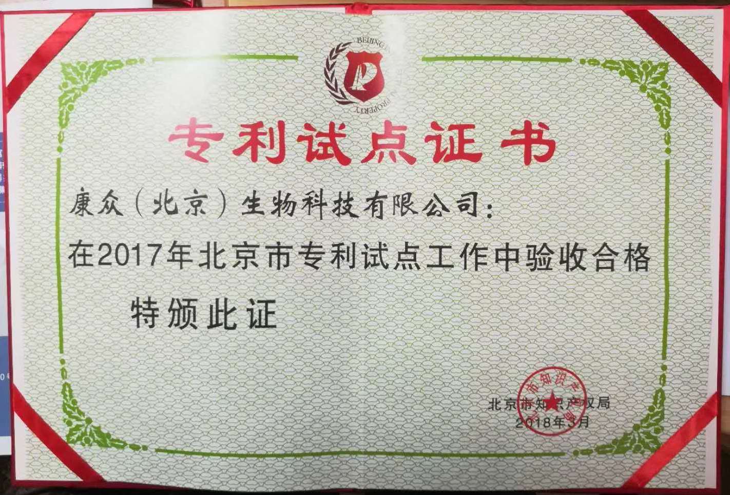 今年的4月26日是第18個世界知識產權日。至此宣傳周之際,康眾生物又迎來今年的另一項殊榮---北京市專利試點單位。根據《北京市企事業單位專利試點工作管理辦法(修訂稿)》的要求和北京市專利試點工作的總體安排組織和開展的。根據工作安排,北京市知識產權局對參加2017年北京市專利試點工作的企事業單位進行了一年的試點培育工作,并與各區知識產權局、市經濟技術開發區知識產權局共同對有關企事業單位進行了專利試點考核驗收工作。